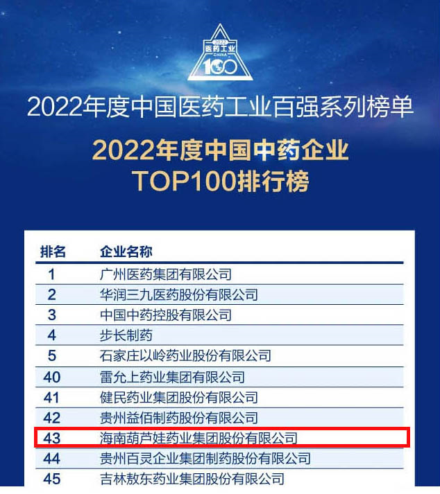 美狮贵宾会官网药业集团连续4年荣登“中国中药企业TOP100排行榜”,排名上升至第43位